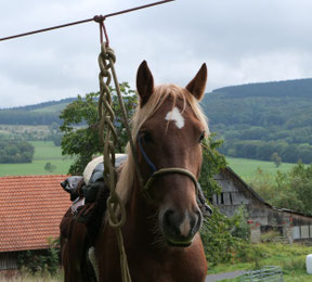 Der Strick wird am Sattel befestigt, wir zeigen Dir gerne wie das geht.