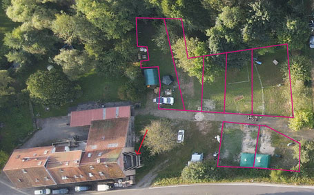 Die Ferienwohnungen haben jeweils einen Balkon (siehe roter Pfeil im neben/unten stehenden Bild) von dem aus Du Dein Pferd jederzeit sehen kannst.